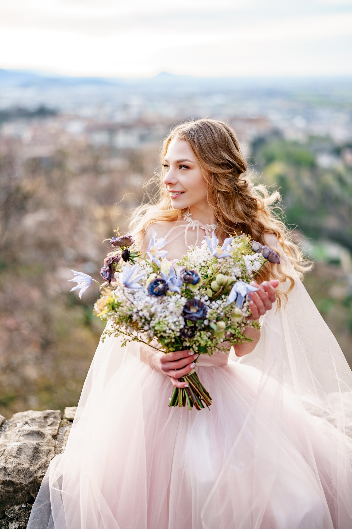 Soft and serene, the lavender, purple, and soft blue bridal bouquet offers a dreamy and romantic atmosphere. This color palette is ideal for spring or outdoor weddings, adding a touch of elegance and tranquility to your floral arrangements. Whether youâre planning an intimate garden gathering or a larger celebration, our bridesmaid flower bouquets can complement your bridal bouquet, creating a cohesive and beautiful floral design for your entire bridal party.