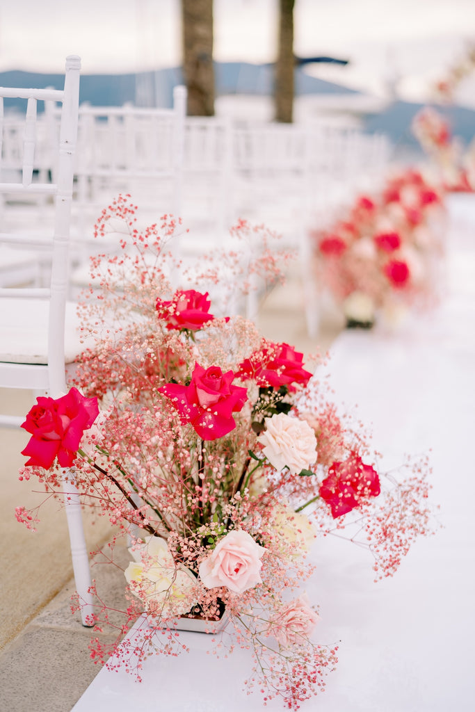 Lining your aisle with fresh blooms creates a breathtaking entrance. From ground floral arrangements that feel like a blooming meadow, to chair or pew florals tied with silk ribbon, we design every detail to lead you gracefully toward the altar.