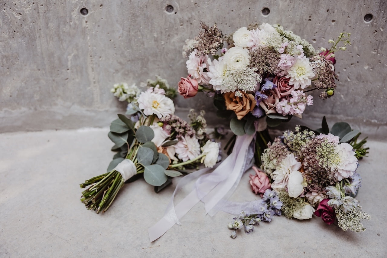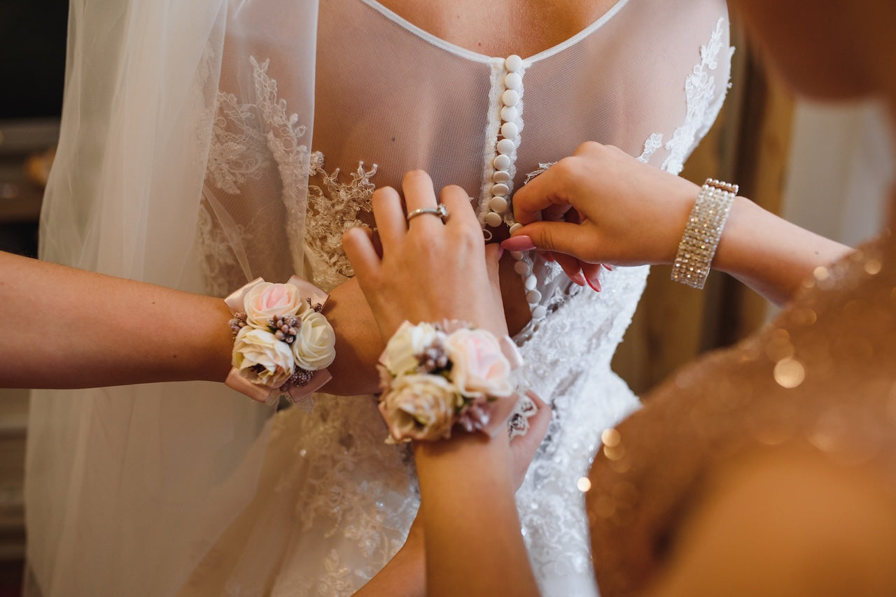 Wearable floral accents for the ladies. Created in your selected colour palette. Choose either a lapel corsage (magnet) or corsage (ribbon tie).