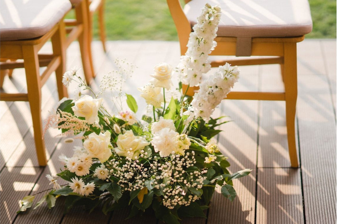 Medium Size: Elegant floral arrangements with seasonal blooms and greenery, designed to enhance your aisle with a refined touch.