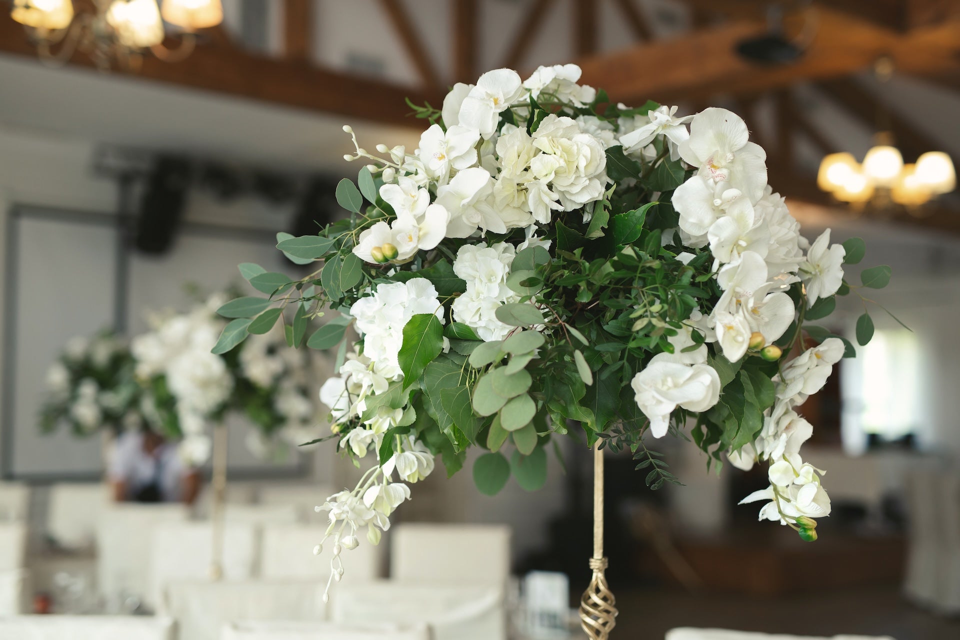 Arrangements designed to adorn wedding arches, made with premium flowers like roses, hydrangeas, and greenery, providing a dramatic and breathtaking focal point for the ceremony.